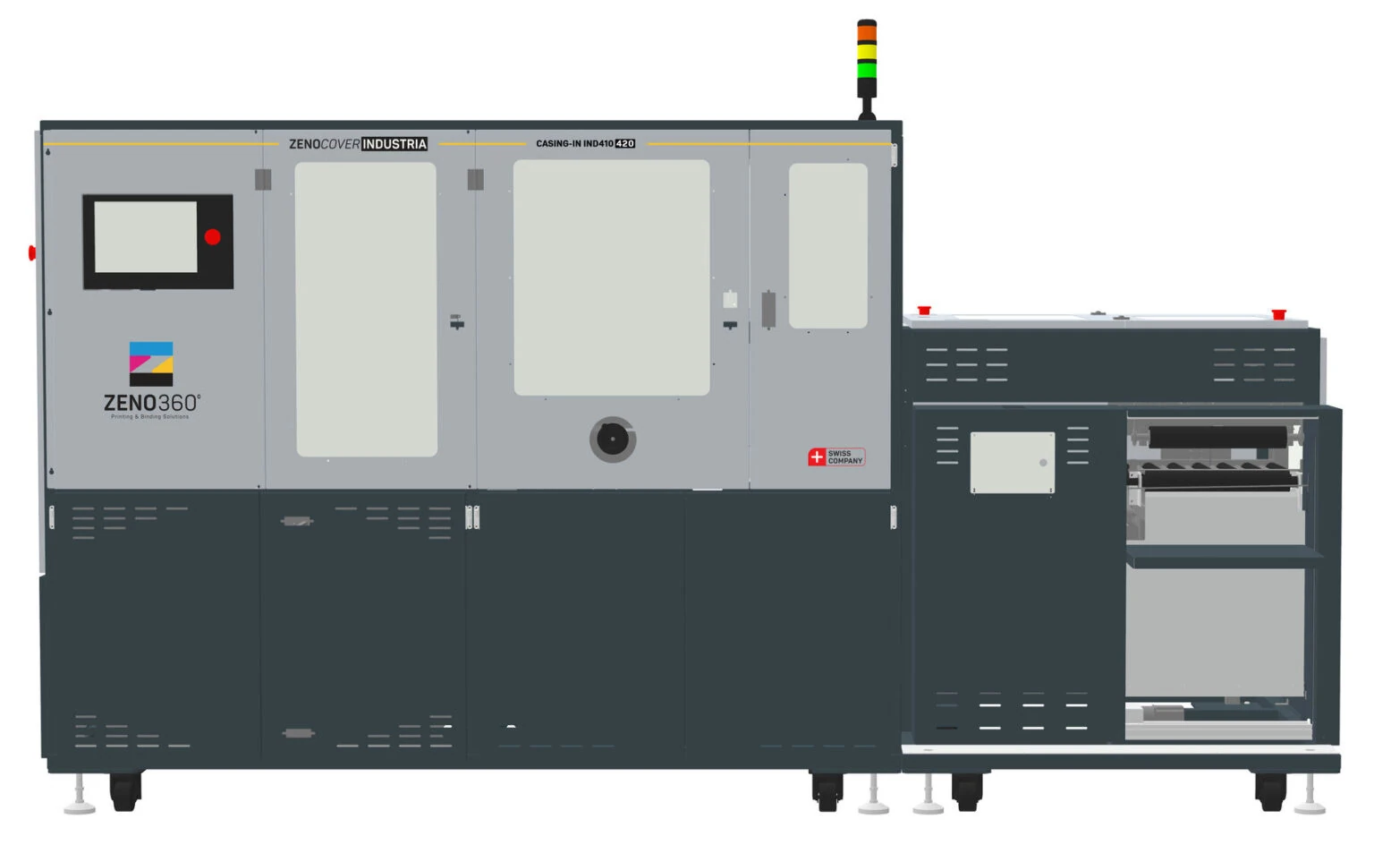 Casing-In IND410-420 is a fully automatic Casing-In machine. The hard cover and bookblock are fed into machine automatically. The machine sprays the hotmelt, assembles the cover on the bookblock in centre position. It includes heat and joint forming station, It is compact and save the space of operation.